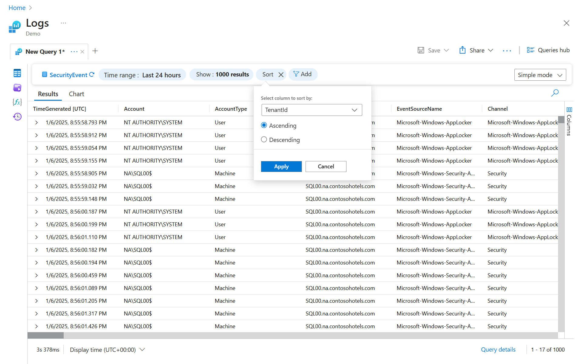 | sort by TimeGenerated