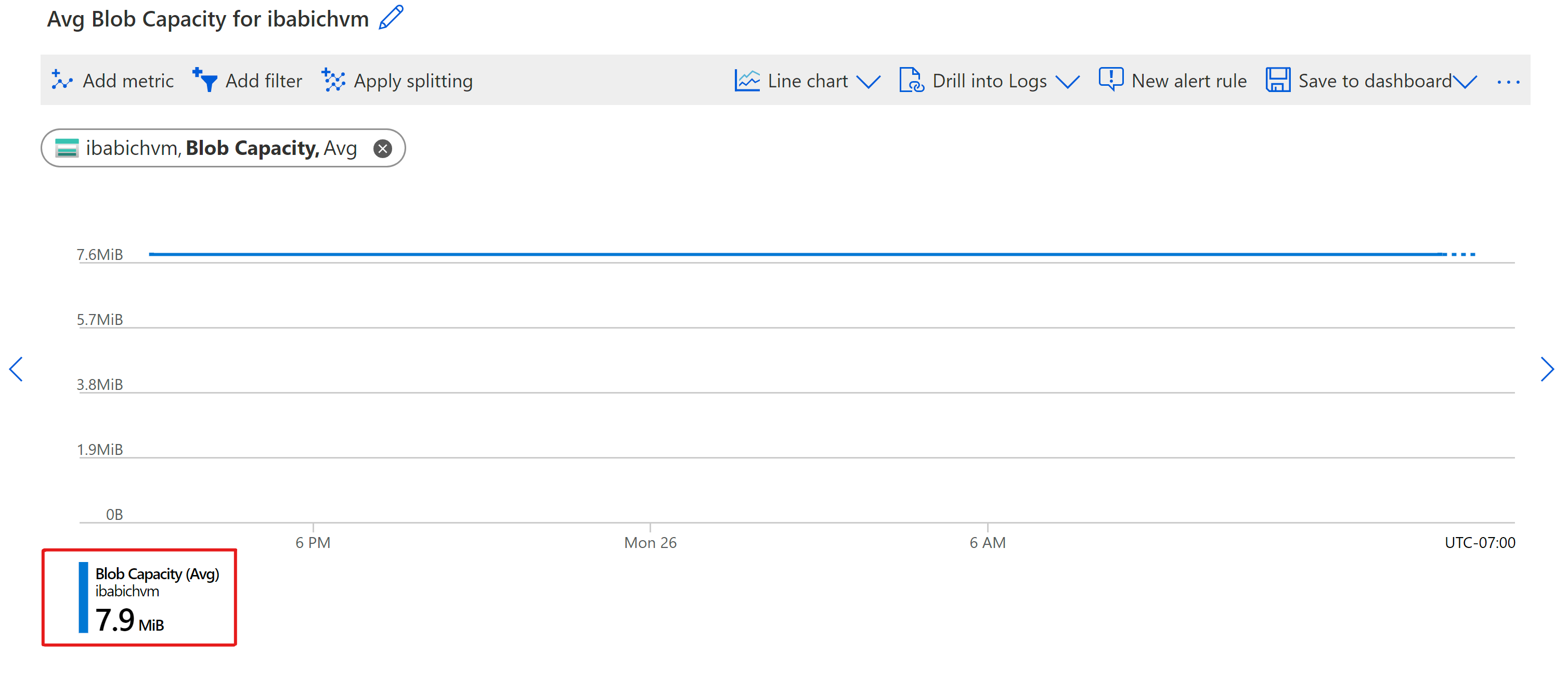 The resource provider Storage account (resource name: ibabichvm) has metric unit defined for "Blob Capacity" as bytes. Hence, the prefix used is mebi (1024^2), an IEC prefix. Screenshot that shows metric value with prefix mebi.