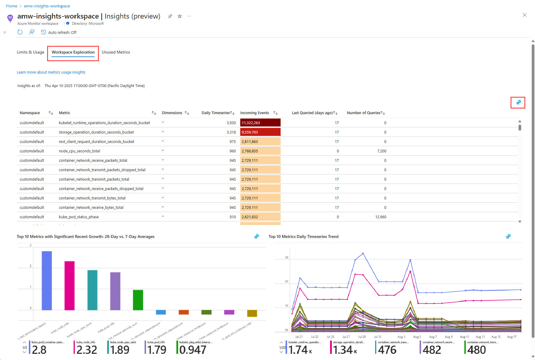 You can open metrics usage insights either for a single Azure Monitor workspace or for all Azure Monitor workspaces in your subscription.
