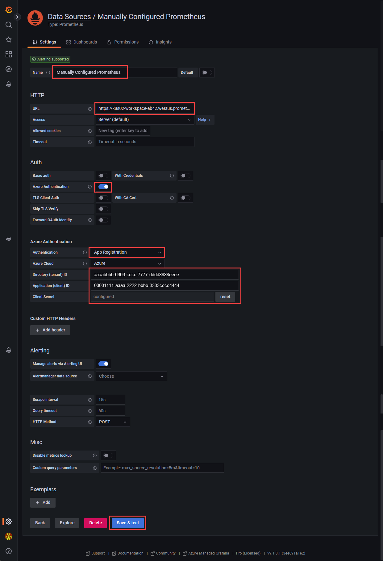 You created your app registration and assigned it access to query data from your Azure Monitor workspace. The next step is to set up your Prometheus data source in Grafana.