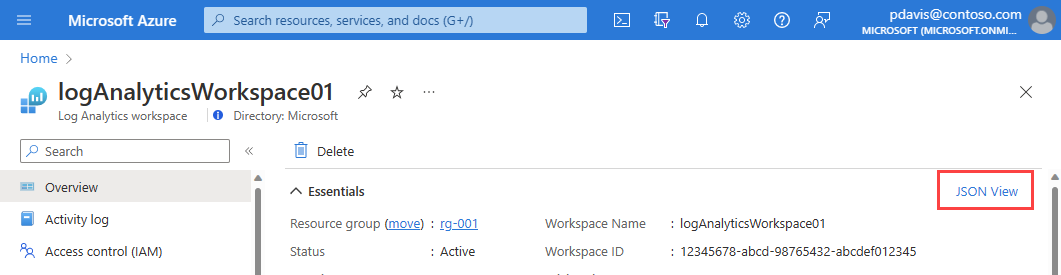 To find the resourceID in the portal, from the resource's overview page, select JSON view.