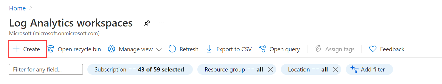 If you want to create a new Log Analytics workspace, use the following procedure. If you're going to use an existing workspace, move to the next section.