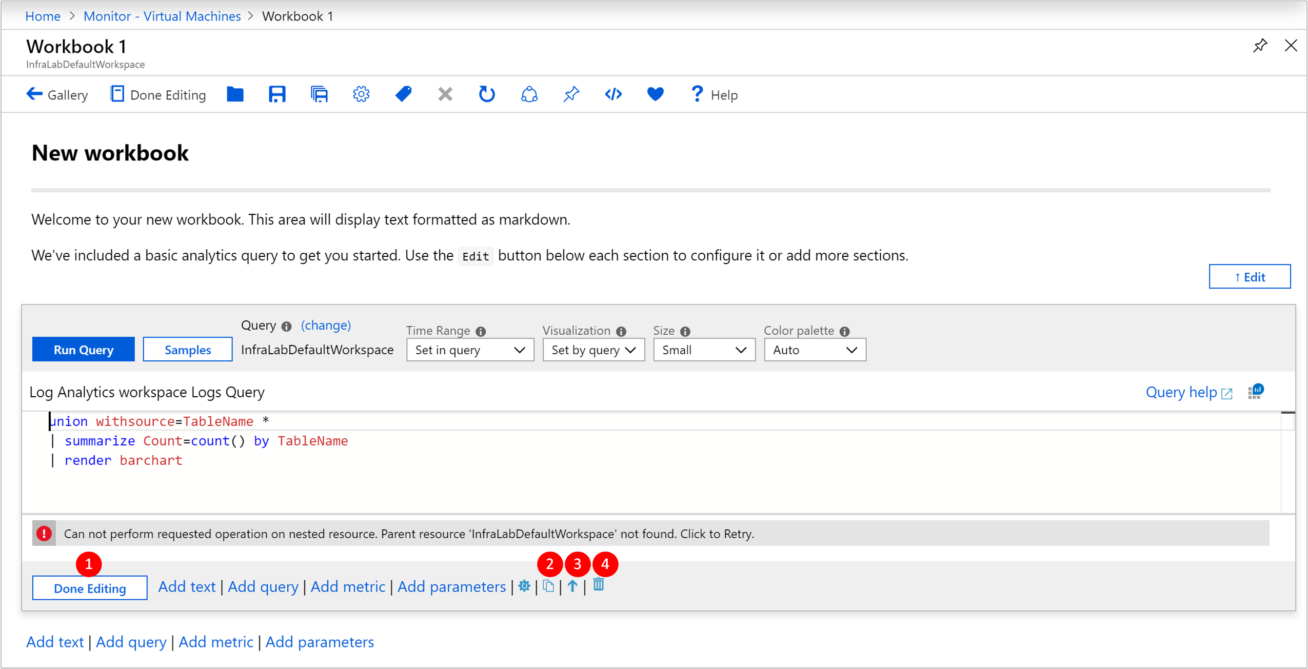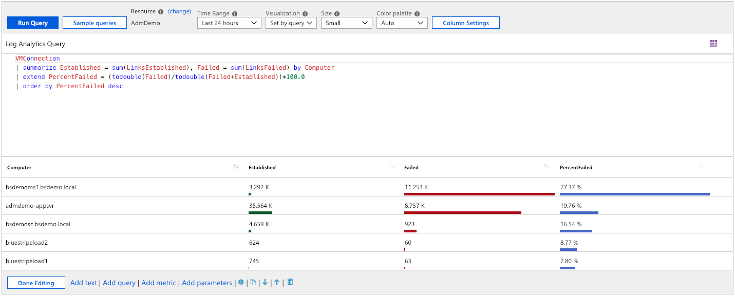 You also aren't limited to querying from the context of the VM from which you opened the workbook. To query across multiple VMs and Log Analytics workspaces, you must have access permission to those resources.
