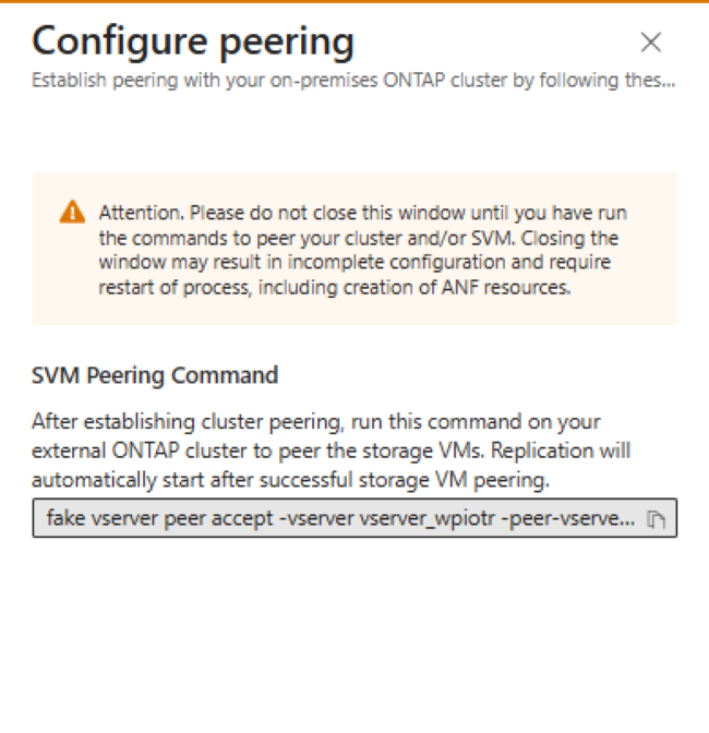 9. After receiving the response, copy the CLI command from svmPeeringCommand into the ONTAP CLI.