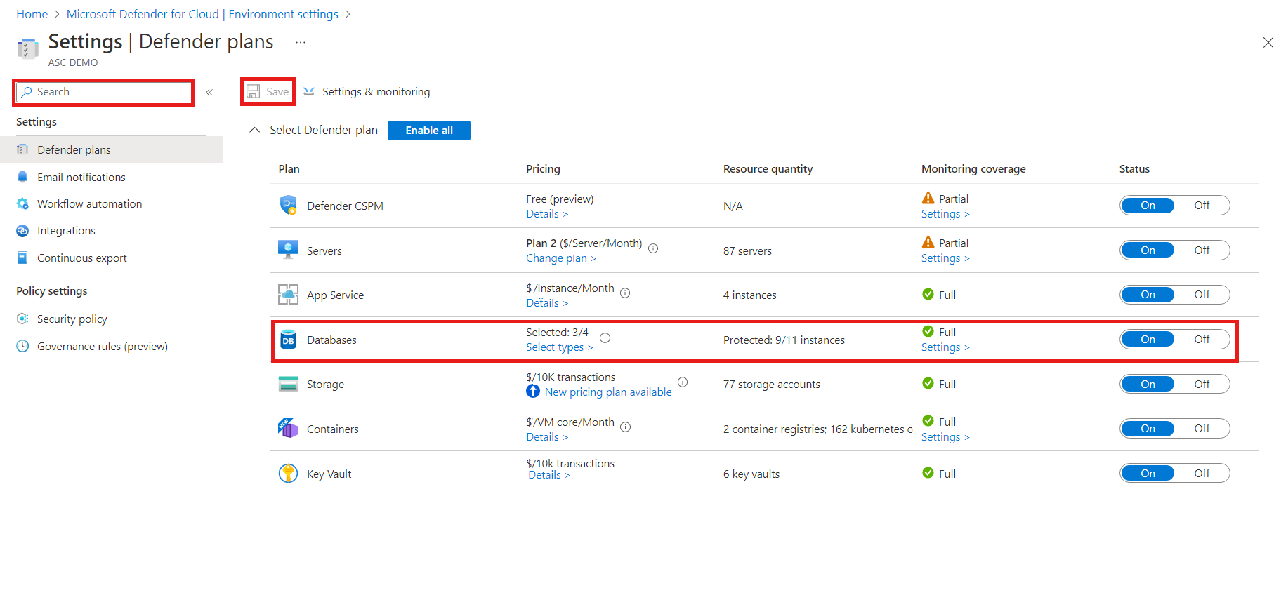 Alternatively, you can enable it at the resource level as described in Enable Microsoft Defender for Azure SQL Database at the resource level.