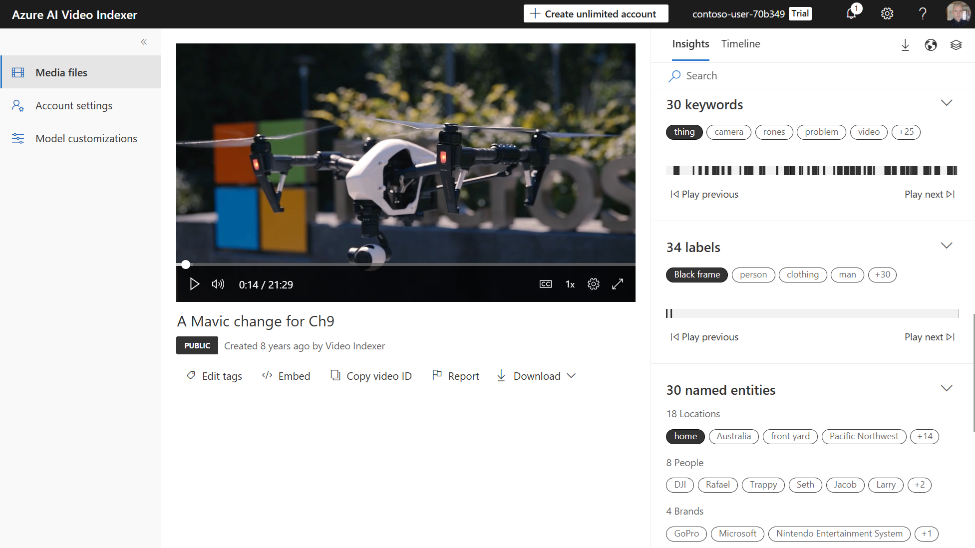 - Select Azure AI Video Indexer above the left navigation bar to exit and return to the home page.