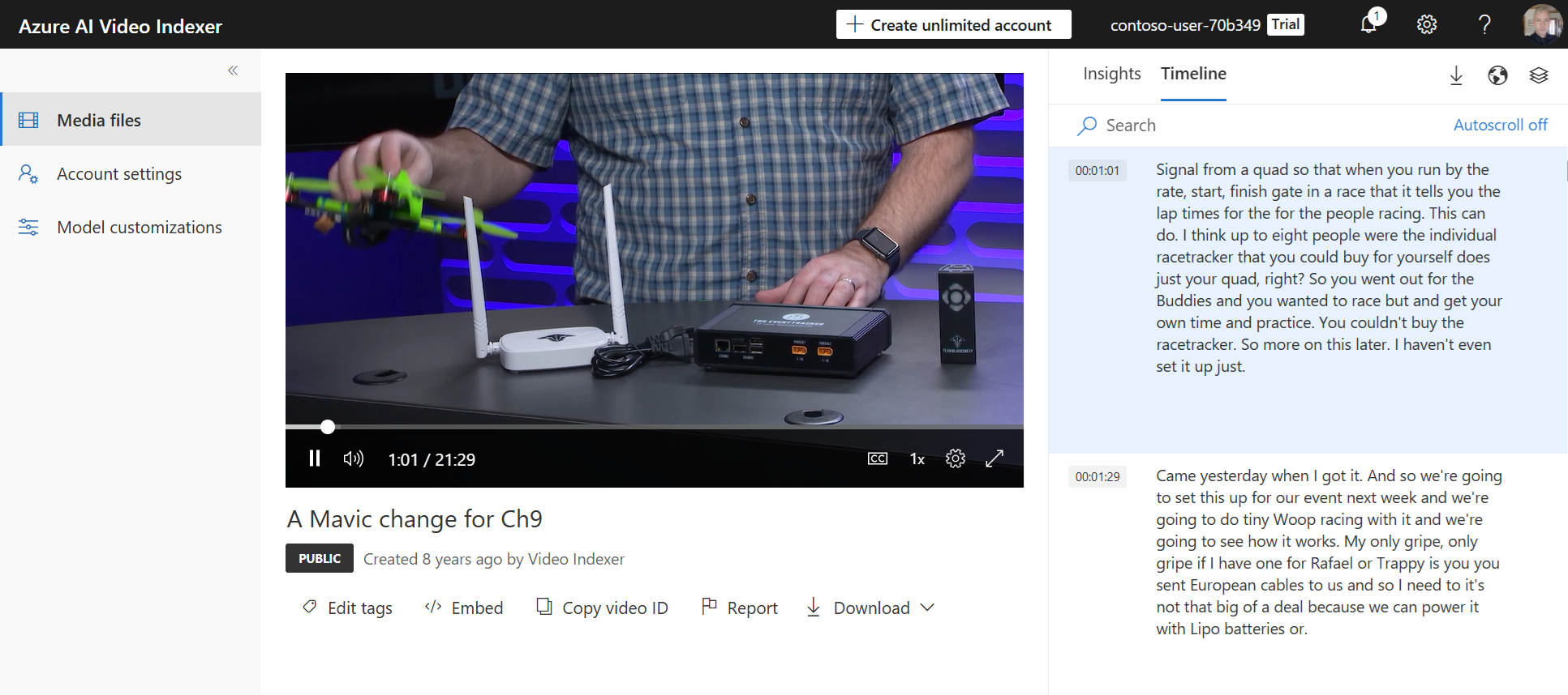 This article shows you how to get started with Azure AI Video Indexer by using the web portal. Try indexing a video with the web portal before you use the API.