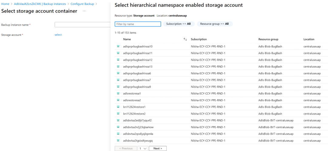 - Identify or create a Backup vault to configure Azure Data Lake Storage backup.