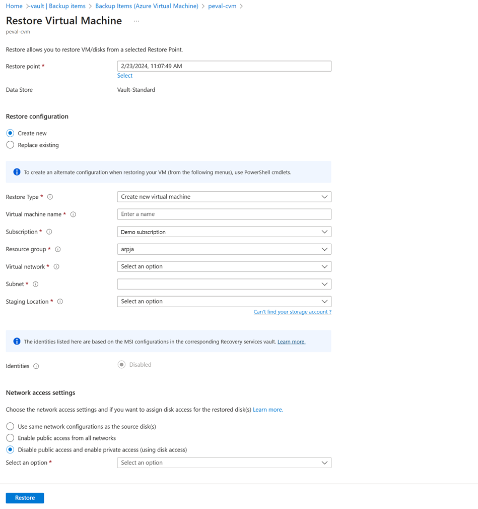 Azure Backup also allows you to configure the access options for the restored disks once the restore operation is complete. You can set the disk access preferences at the time of initiating the restore.