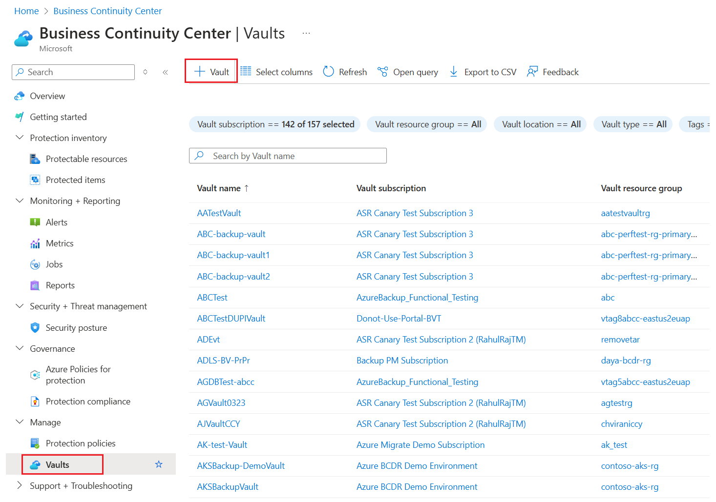 Region: Select the geographic region for the vault. For you to create a vault to help protect any data source, the vault must be in the same region as the data source.