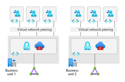 For regional deployments, primarily use the hub-and-spoke topology with a regional hub for each spoke Azure region. Use application landing zone virtual networks that use virtual network peering to connect to a regional central hub virtual network for the following scenarios: