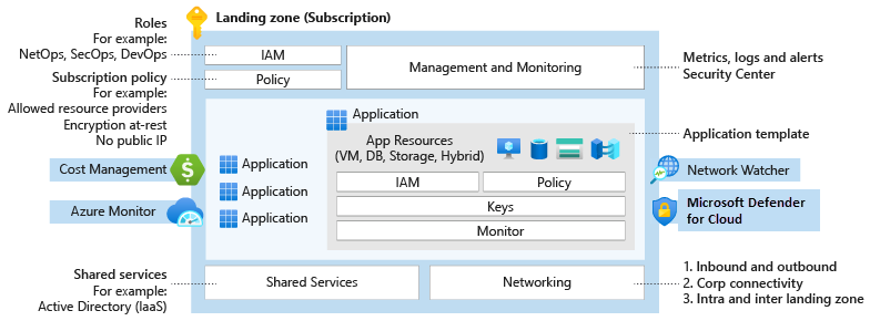 Scope: Consider your decisions from identity, network, security, and management design area reviews. Your team can compare review decisions from automated governance, which is part of the Azure landing zone accelerator. Review decisions can help you determine what to audit or enforce and what policies to automatically deploy.