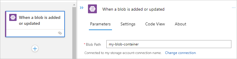 This example continues with the Azure Blob Storage trigger named When a blob is added or modified (properties only).