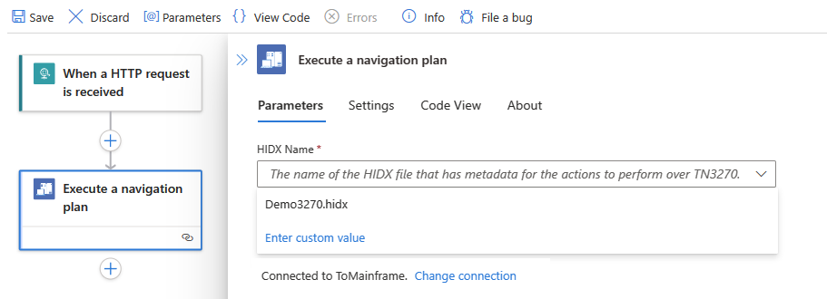 3270 built-in connector: Upload your HIDX file to your Standard logic app resource.