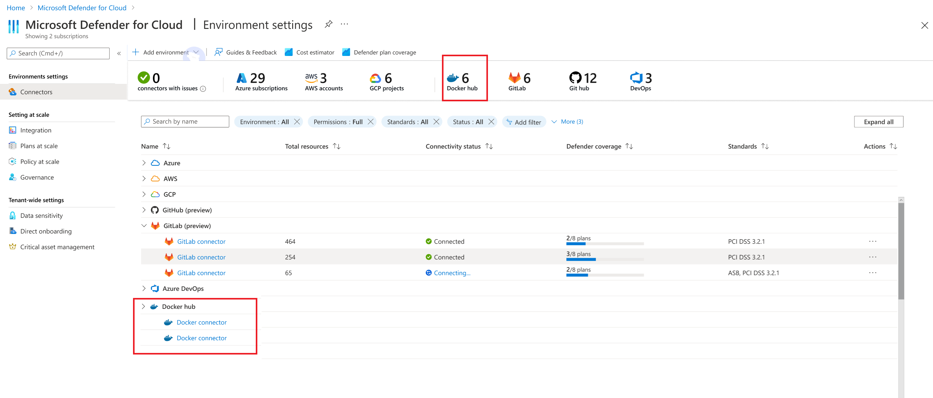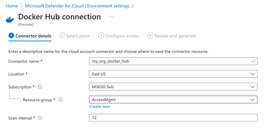 To maintain a continuous and secure link between Defender for Cloud and your Docker Hub organization, ensure you have a dedicated user with an organization email address. Each Docker Hub connector corresponds to one Docker Hub organization. Therefore onboard a separate Docker Hub environment connector in Defender for Cloud for each Docker Hub organization you manage to achieve optimal security coverage for your container software supply chain.