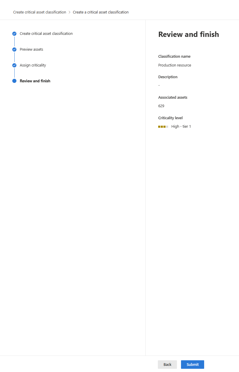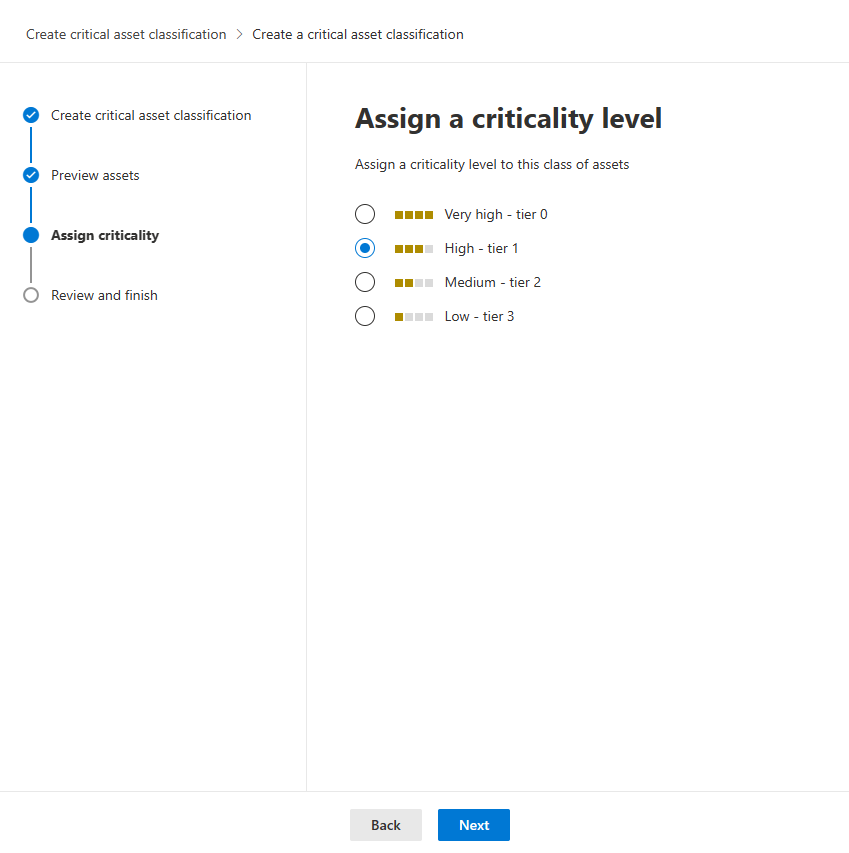 On the Assign criticality page, assign the criticality level to all assets matching the rule. Then select Next.