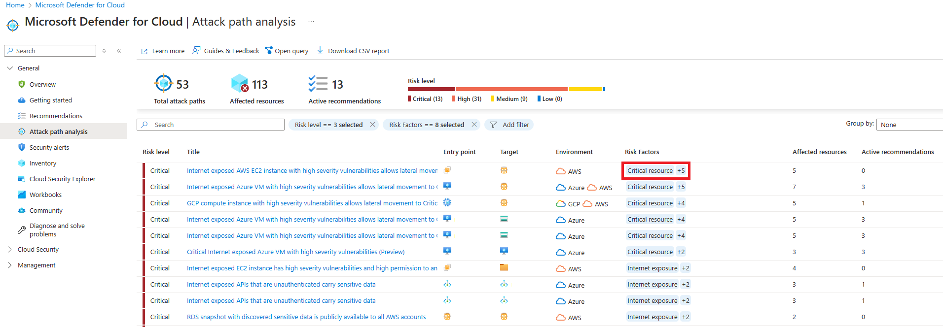 Once your assets are updated, go to the Attack path analysis page in Defender for Cloud. You can see all the attack paths to your critical assets.