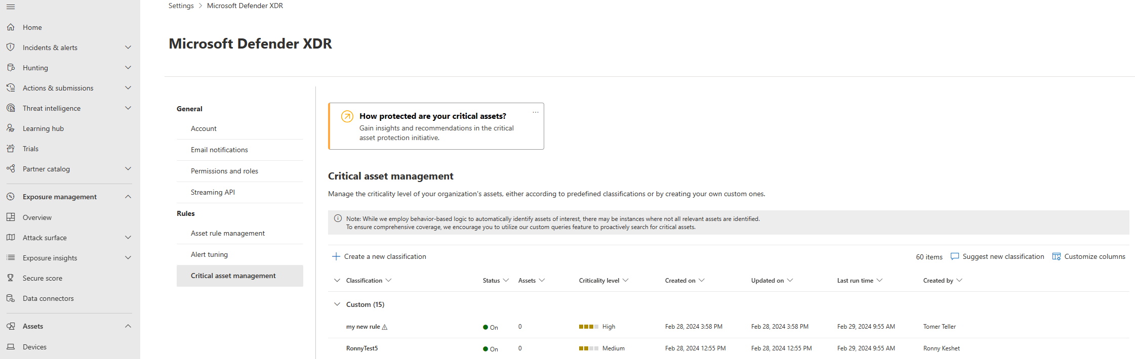 You then arrive at the Critical asset management page in the Microsoft Defender XDR portal.