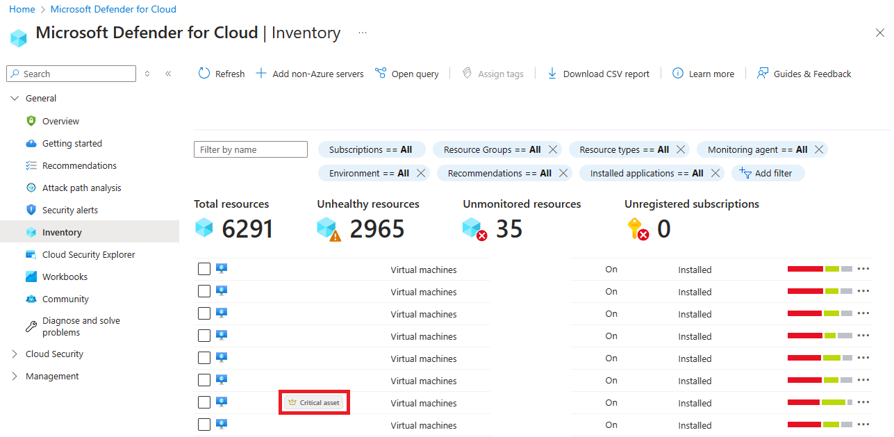 In the Inventory page of Defender for Cloud, you can see the critical assets in your organization.