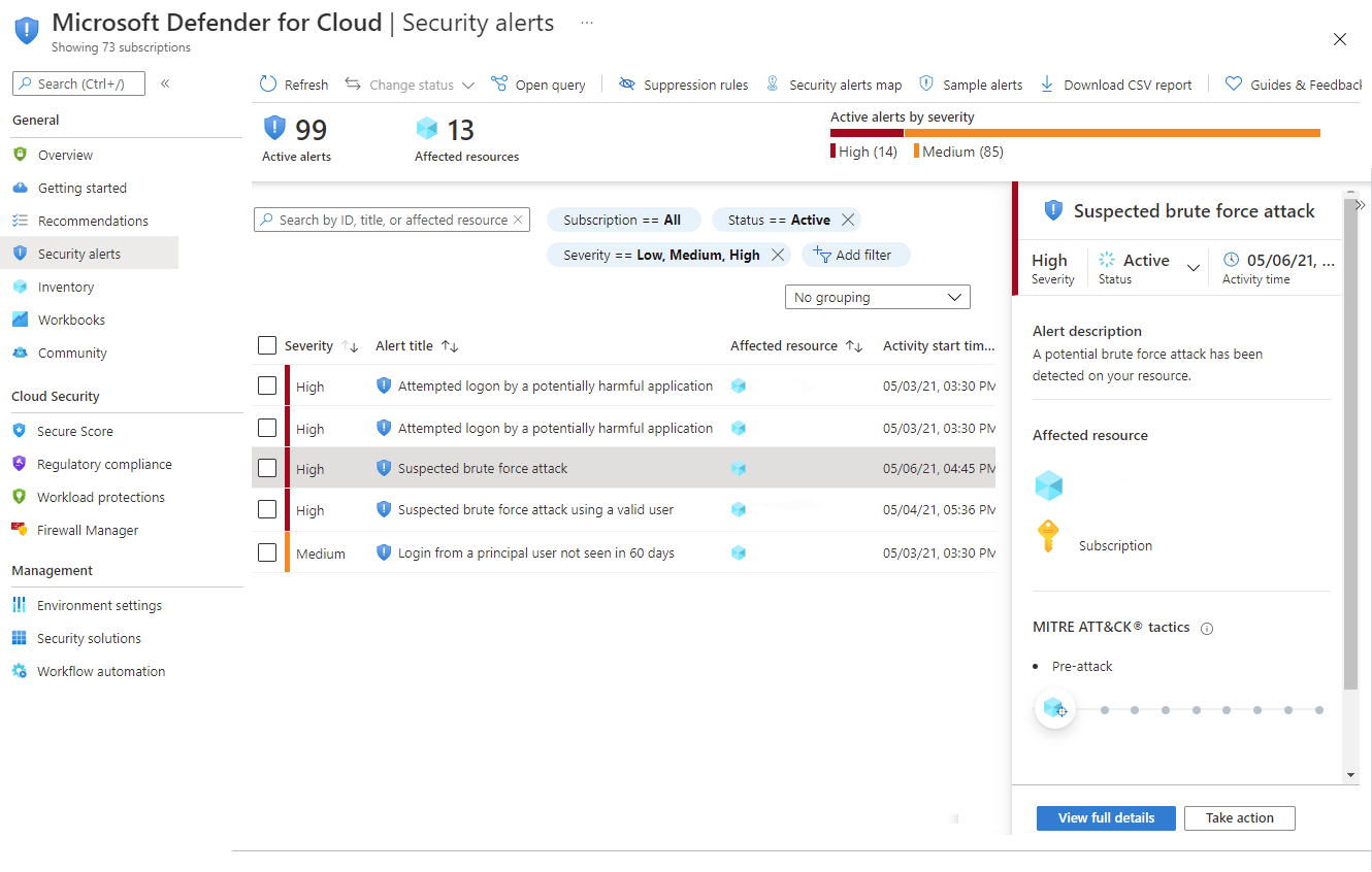 - Anomalous database access and query patterns: For example, an abnormally high number of failed sign-in attempts with different credentials (a brute force attack). The alerts can separate successful brute force attacks from unsuccessful ones.