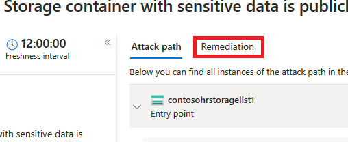 8. Select a recommendation. Once you're done with your investigation of an attack path and you review all of the associated findings and recommendations, you can start to remediate the attack path.