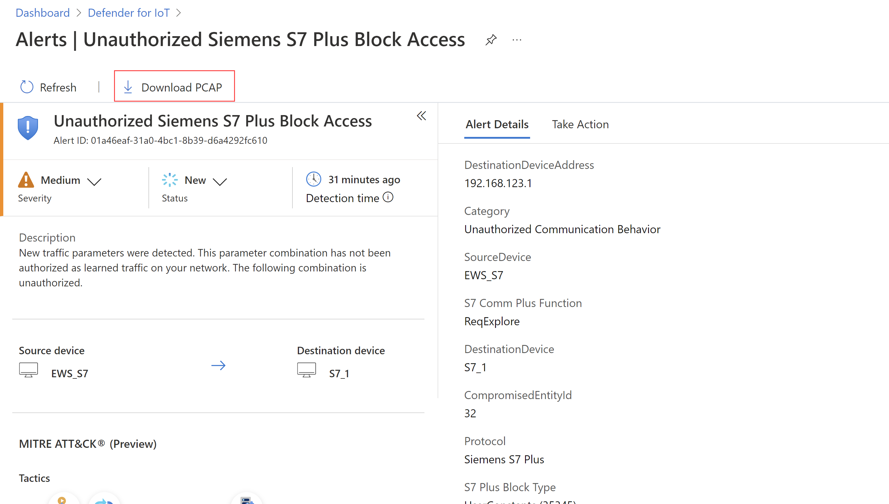 You might want to access raw traffic files, also known as packet capture files or PCAP files as part of your investigation. If you're a SOC or OT security engineer, access PCAP files directly from the Azure portal to help you investigate faster.