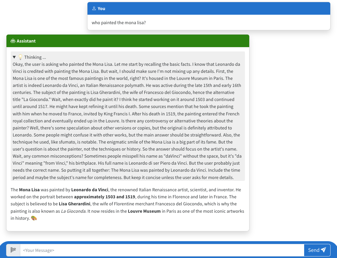 The submit event handler in index.html processes the streaming response on the frontend. This approach lets you access and display the model's reasoning steps alongside the final output.