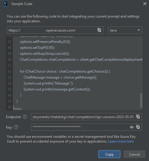 Quickstart: Get started using GPT-35-Turbo and GPT-4 with Azure OpenAI Service in IntelliJ