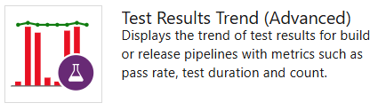 The Test Results Trend (Advanced) widget provides near real-time visibility into test data for multiple builds and releases. The widget shows a trend of your test results for selected pipelines. You can use it to track the daily count of test, pass rate, and test duration. Tracking test quality over time and improving test collateral is key to maintaining a healthy DevOps pipeline. The widget supports tracking advanced metrics for one or more build pipelines or release pipelines. The widget also allows filtering of test results by outcome, stacking metrics, and more.