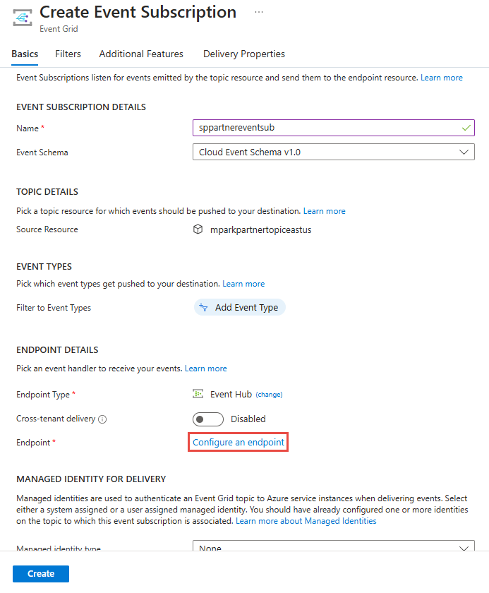 Subscribing to the partner topic tells Event Grid where you want your partner events to be delivered.