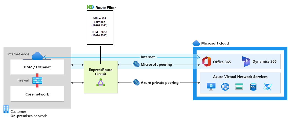 Microsoft peering of ExpressRoute circuits configured before August 1, 2017, will have all Microsoft Office service prefixes advertised through Microsoft peering, even without route filters. For circuits configured on or after August 1, 2017, no prefixes will be advertised until a route filter is attached to the circuit.