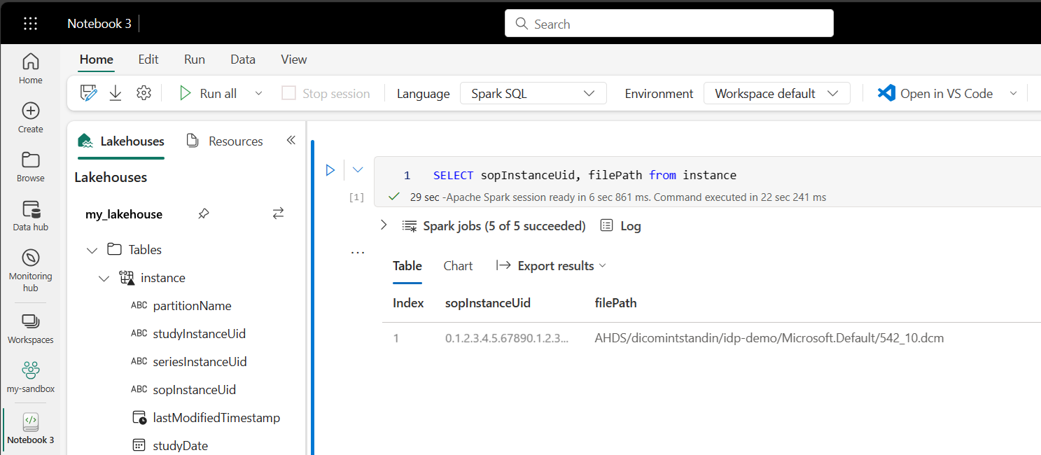 - Use notebooks to query for DICOM data in the lakehouse.