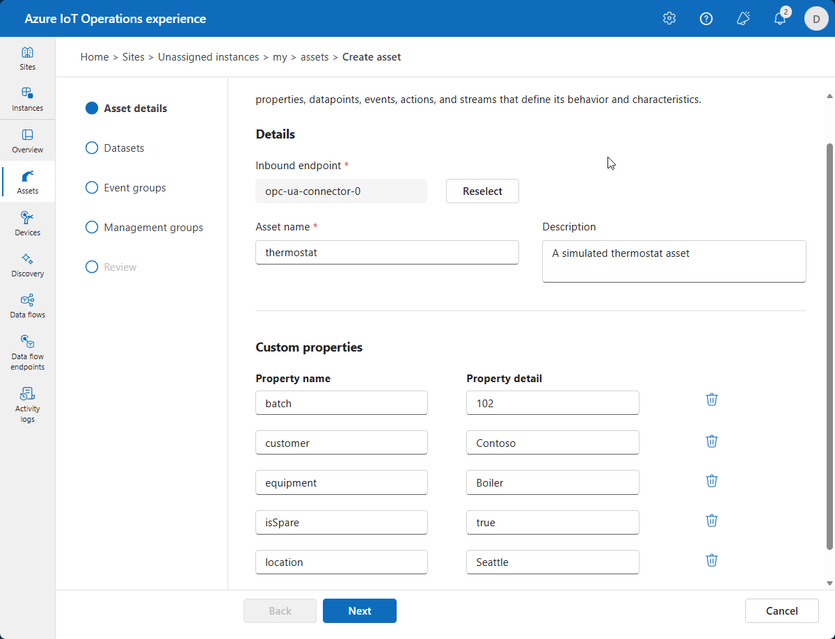 - An Azure Device Registry namespace to store your assets and devices.