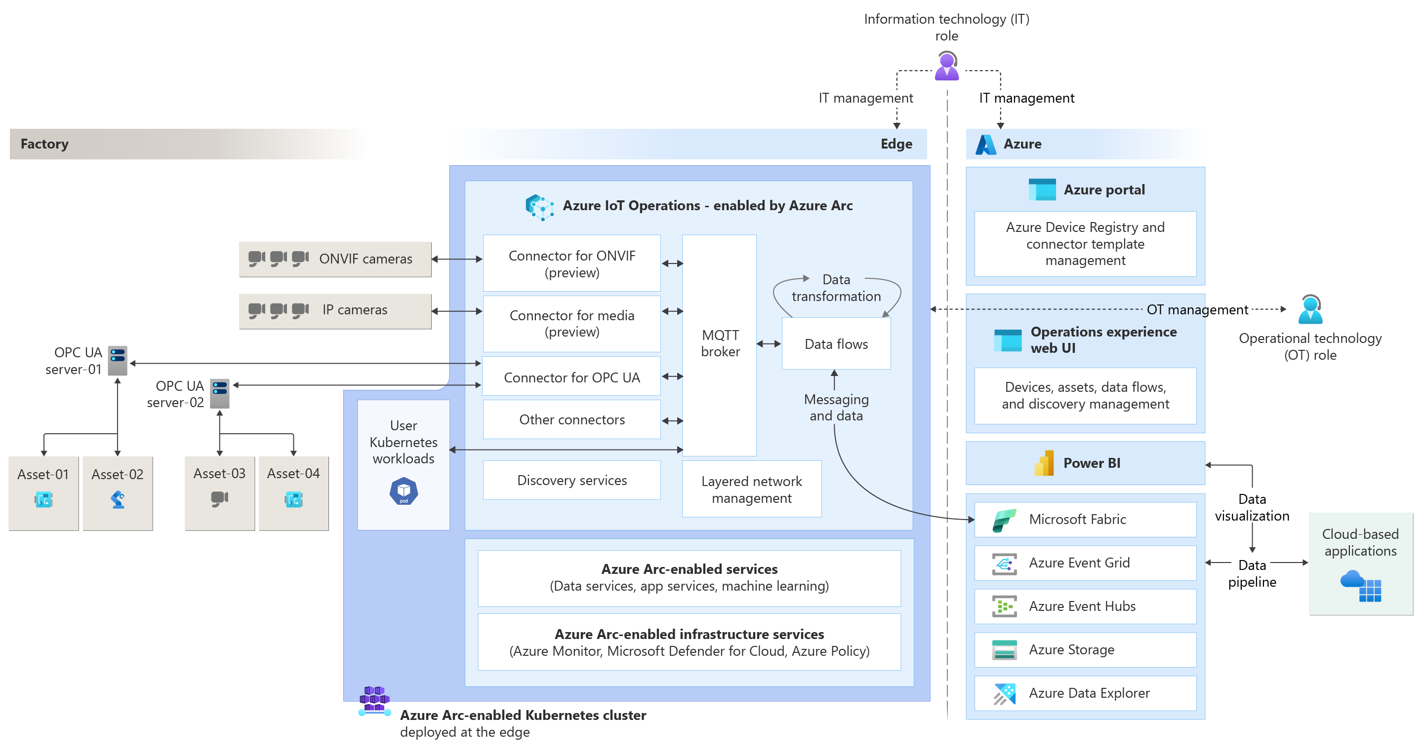 - Azure IoT Operations: A set of data services that run on Azure Arc-enabled edge Kubernetes clusters. These services include: