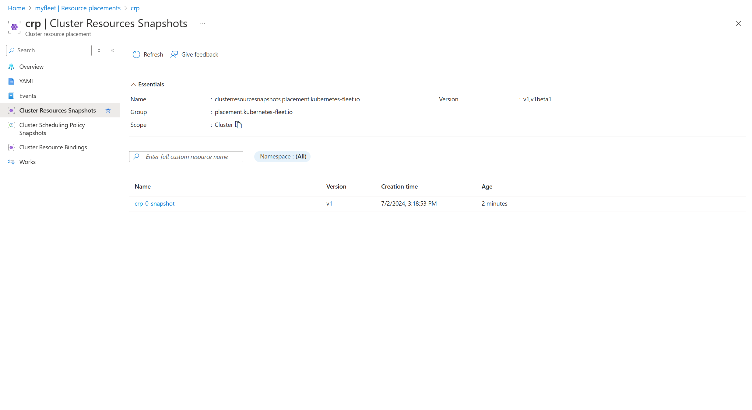 kind: ClusterResourcePlacement