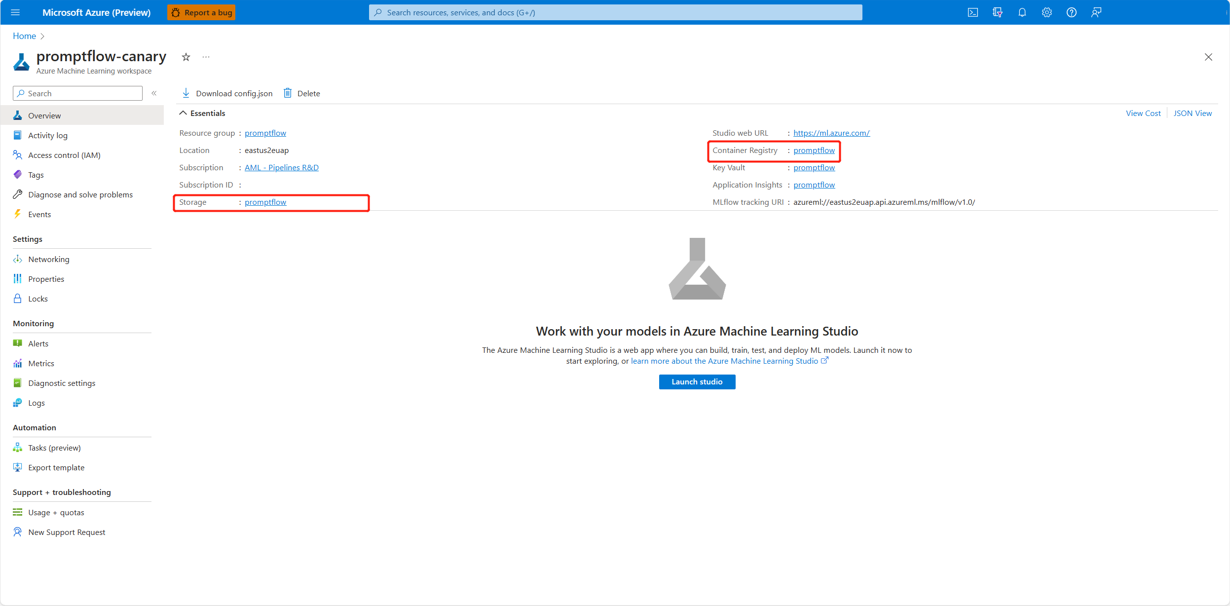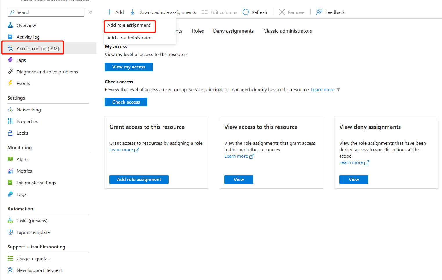 Go to the Azure Machine Learning workspace overview page in Azure portal.