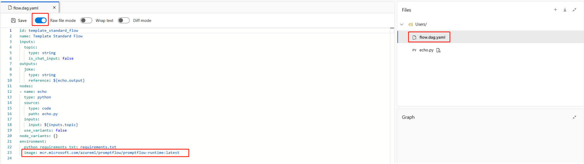 You can also customize the environment that you use to run this flow by adding packages in the requirements.txt file in the flow folder. After you add more packages in this file, you can choose either of these options: