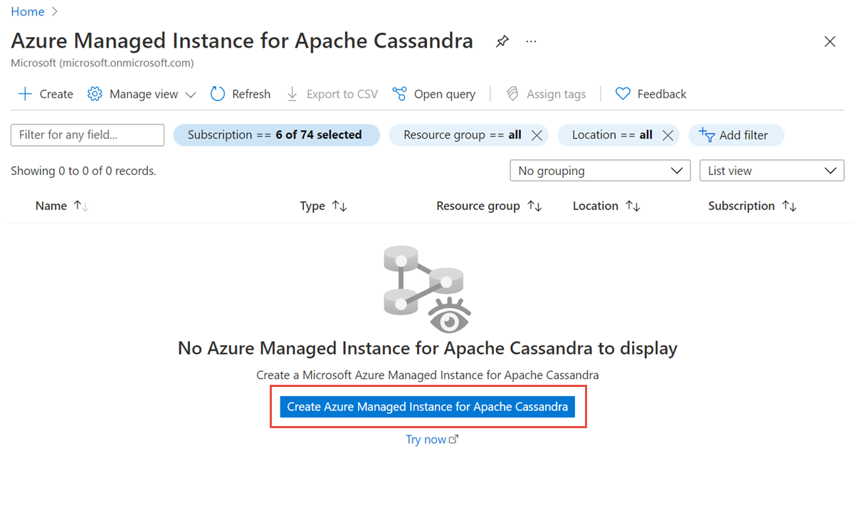 In the search bar, search for Managed Instance for Apache Cassandra and select the result.