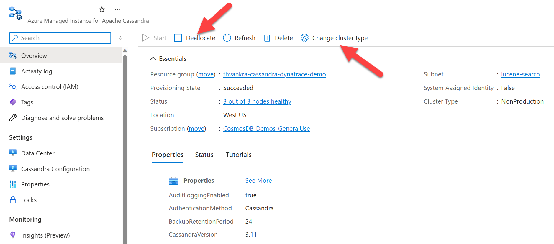 For nonproduction environments, you can pause or deallocate resources in the cluster to avoid being charged for them. You continue to be charged for storage. First, change Cluster Type to NonProduction, and then select Deallocate.