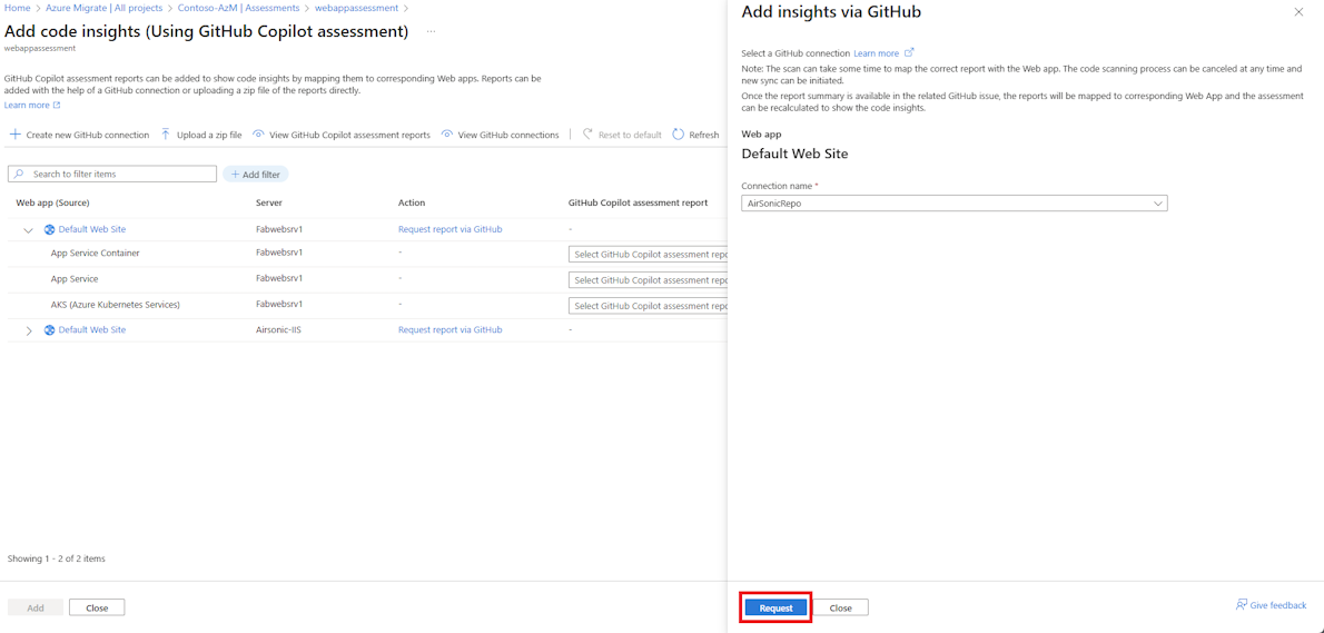 This article describes how to enhance web app assessments by adding code scan insights using GitHub Copilot assessment when modernizing applications for Azure Kubernetes Service (AKS) or Azure App Service. Adding code insights helps you better assess migration readiness and get recommendations for migration strategies based on the code changes identified during the scan.