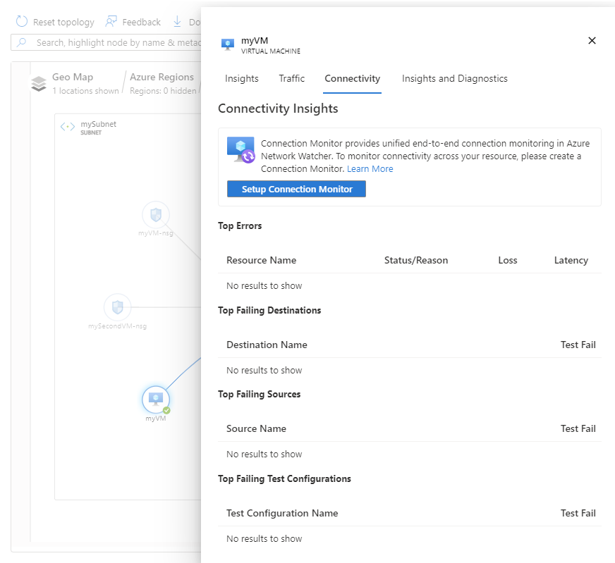 - Connectivity insights are available when connection monitor is enabled. For more information, see Connection monitor.