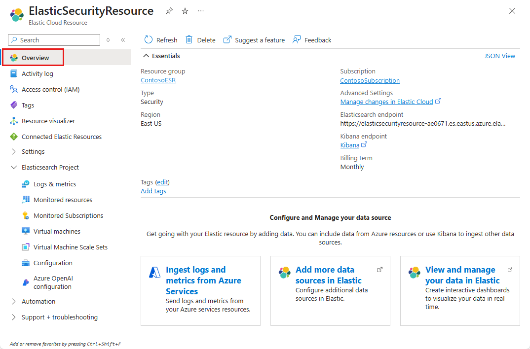 You can easily manage the corresponding Elastic deployments or Azure resources using the links, provided you have owner or contributor rights to those deployments and resources.