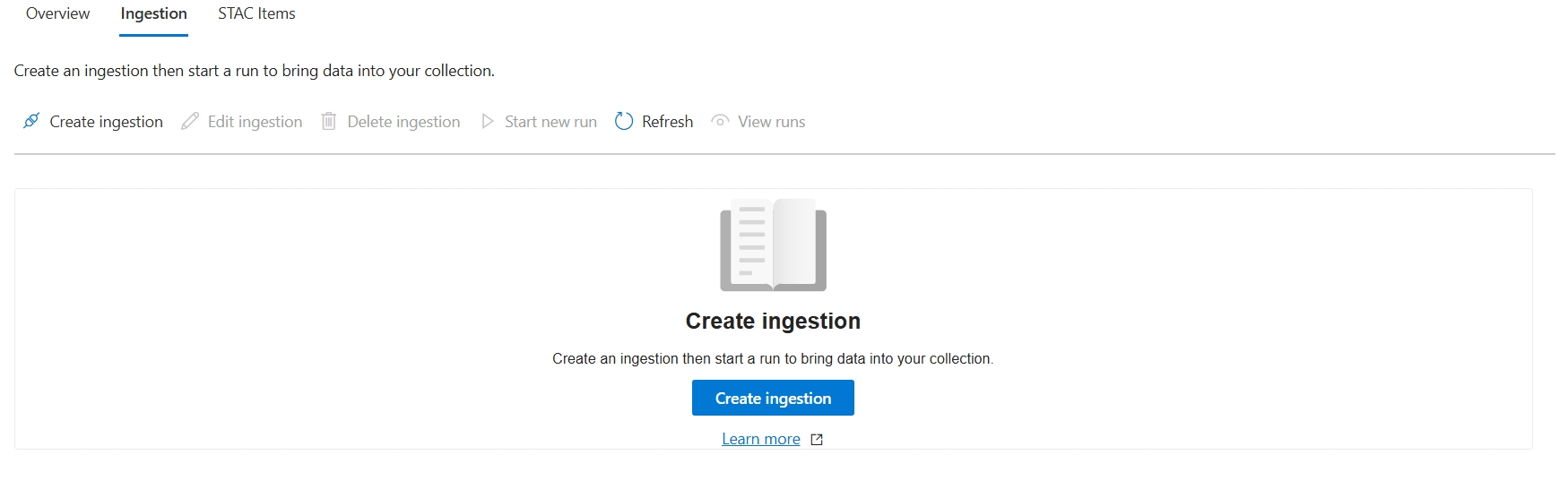 This quickstart explains how to ingest data into your collection using the Microsoft Planetary Computer Pro web interface.