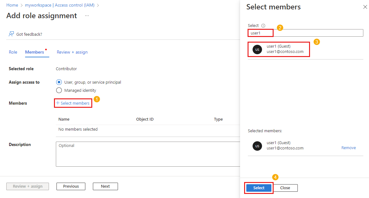 Add a group owner. This user has permissions to add or remove group members. The group owner isn't required to be group member, or have direct RBAC role on the workspace.