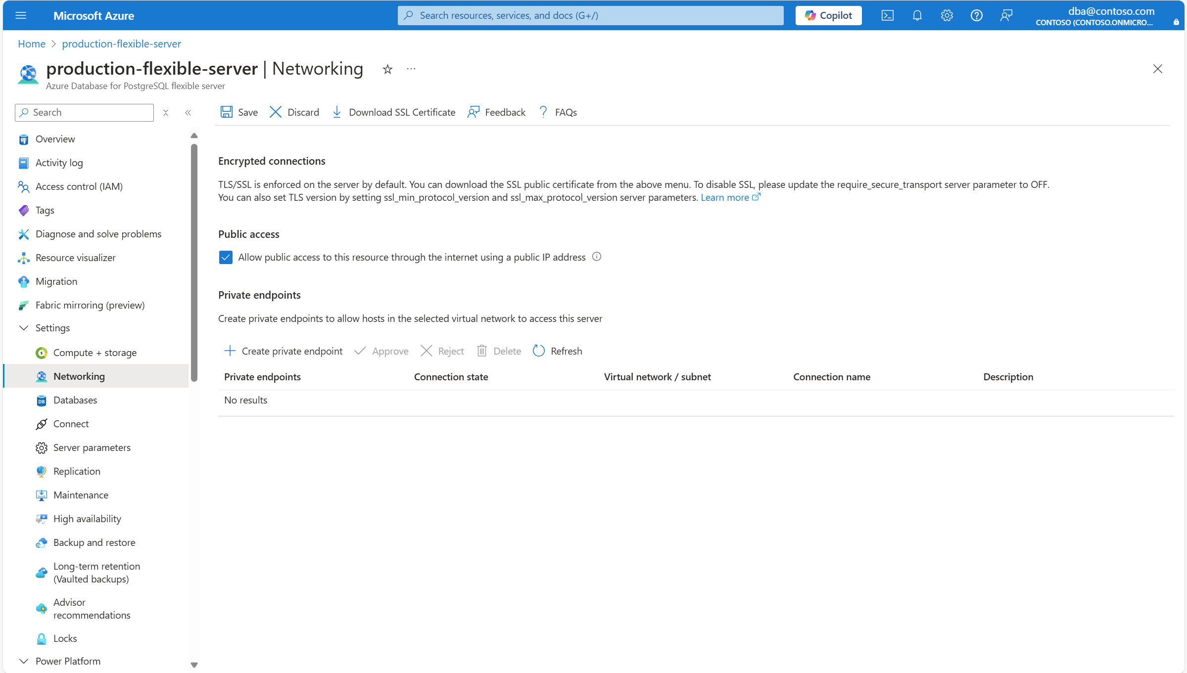 If you enable public access, connectivity to the server is also possible via private endpoints.