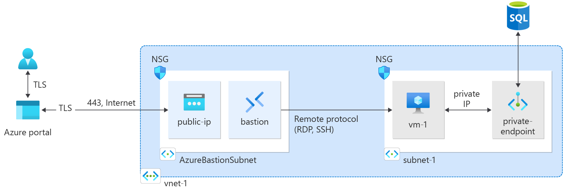 main.tfand insert the following code:resource "random_pet" "prefix" { prefix = var.resource_group_name_prefix length = 1 } # Resource Group resource "azurerm_resource_group" "rg" { location = var.resource_group_location name = "${random_pet.prefix.id}-rg" } # Virtual Network resource "azurerm_virtual_network" "my_terraform_network" { name = "${random_pet.prefix.id}-vnet" address_space = ["10.0.0.0/16"] location = azurerm_resource_group.rg.location resource_group_name = azurerm_resource_group.rg.name } # Subnet 1 resource "azurerm_subnet" "my_terraform_subnet_1" { name = "subnet-1" resource_group_name = azurerm_resource_group.rg.name virtual_network_name = azurerm_virtual_network.my_terraform_network.name address_prefixes = ["10.0.0.0/24"] } # Public IP address for NAT gateway resource "azurerm_public_ip" "my_public_ip" { name = "public-ip-nat" location = azurerm_resource_group.rg.location resource_group_name = azurerm_resource_group.rg.name allocation_method = "Static" sku = "Standard" } # NAT Gateway resource "azurerm_nat_gateway" "my_nat_gateway" { name = "nat-gateway" location = azurerm_resource_group.rg.location resource_group_name = azurerm_resource_group.rg.name } # Associate NAT Gateway with Public IP resource "azurerm_nat_gateway_public_ip_association" "example" { nat_gateway_id = azurerm_nat_gateway.my_nat_gateway.id public_ip_address_id = azurerm_public_ip.my_public_ip.id } # Associate NAT Gateway with Subnet resource "azurerm_subnet_nat_gateway_association" "example" { subnet_id = azurerm_subnet.my_terraform_subnet_1.id nat_gateway_id = azurerm_nat_gateway.my_nat_gateway.id } # Create public IP for virtual machine resource "azurerm_public_ip" "my_public_ip_vm" { name = "public-ip-vm" location = azurerm_resource_group.rg.location resource_group_name = azurerm_resource_group.rg.name allocation_method = "Static" sku = "Standard" } # Create Network Security Group and rule resource "azurerm_network_security_group" "my_terraform_nsg" { name = "nsg-1" location = azurerm_resource_group.rg.location resource_group_name = azurerm_resource_group.rg.name security_rule { name = "SSH" priority = 1001 direction = "Inbound" access = "Allow" protocol = "Tcp" source_port_range = "*" destination_port_range = "22" source_address_prefix = "*" destination_address_prefix = "*" } } # Create network interface resource "azurerm_network_interface" "my_terraform_nic" { name = "nic-1" location = azurerm_resource_group.rg.location resource_group_name = azurerm_resource_group.rg.name ip_configuration { name = "my_nic_configuration" subnet_id = azurerm_subnet.my_terraform_subnet_1.id private_ip_address_allocation = "Dynamic" public_ip_address_id = azurerm_public_ip.my_public_ip_vm.id } } # Connect the security group to the network interface resource "azurerm_network_interface_security_group_association" "example" { network_interface_id = azurerm_network_interface.my_terraform_nic.id network_security_group_id = azurerm_network_security_group.my_terraform_nsg.id } # Generate random text for a unique storage account name resource "random_id" "random_id" { keepers = { # Generate a new ID only when a new resource group is defined resource_group = azurerm_resource_group.rg.name } byte_length = 8 } # Create storage account for boot diagnostics resource "azurerm_storage_account" "my_storage_account" { name = "diag${random_id.random_id.hex}" location = azurerm_resource_group.rg.location resource_group_name = azurerm_resource_group.rg.name account_tier = "Standard" account_replication_type = "LRS" } # Create virtual machine resource "azurerm_linux_virtual_machine" "my_terraform_vm" { name = "vm-1" location = azurerm_resource_group.rg.location resource_group_name = azurerm_resource_group.rg.name network_interface_ids = [azurerm_network_interface.my_terraform_nic.id] size = "Standard_DS1_v2" os_disk { name = "myOsDisk" caching = "ReadWrite" storage_account_type = "Premium_LRS" } source_image_reference { publisher = "Canonical" offer = "0001-com-ubuntu-server-jammy" sku = "22_04-lts-gen2" version = "latest" } computer_name = "hostname" admin_username = var.username admin_ssh_key { username = var.username public_key = azapi_resource_action.ssh_public_key_gen.output.publicKey } boot_diagnostics { storage_account_uri = azurerm_storage_account.my_storage_account.primary_blob_endpoint } } # Create SQL server name resource "random_pet" "azurerm_mssql_server_name" { prefix = "sql" } # Random password for SQL server resource "random_password" "admin_password" { count = var.admin_password == null ? 1 : 0 length = 20 special = true min_numeric = 1 min_upper = 1 min_lower = 1 min_special = 1 } locals { admin_password = try(random_password.admin_password[0].result, var.admin_password) } # Create SQL server resource "azurerm_mssql_server" "server" { name = random_pet.azurerm_mssql_server_name.id resource_group_name = azurerm_resource_group.rg.name location = azurerm_resource_group.rg.location administrator_login = var.admin_username administrator_login_password = local.admin_password version = "12.0" } # Create SQL database resource "azurerm_mssql_database" "db" { name = var.sql_db_name server_id = azurerm_mssql_server.server.id } # Create private endpoint for SQL server resource "azurerm_private_endpoint" "my_terraform_endpoint" { name = "private-endpoint-sql" location = azurerm_resource_group.rg.location resource_group_name = azurerm_resource_group.rg.name subnet_id = azurerm_subnet.my_terraform_subnet_1.id private_service_connection { name = "private-serviceconnection" private_connection_resource_id = azurerm_mssql_server.server.id subresource_names = ["sqlServer"] is_manual_connection = false } private_dns_zone_group { name = "dns-zone-group" private_dns_zone_ids = [azurerm_private_dns_zone.my_terraform_dns_zone.id] } } # Create private DNS zone resource "azurerm_private_dns_zone" "my_terraform_dns_zone" { name = "privatelink.database.windows.net" resource_group_name = azurerm_resource_group.rg.name } # Create virtual network link