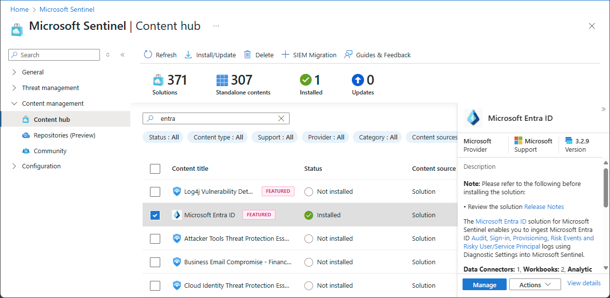 Install the Microsoft Entra ID solution by following the steps at Discover and manage Microsoft Sentinel out-of-the-box content.