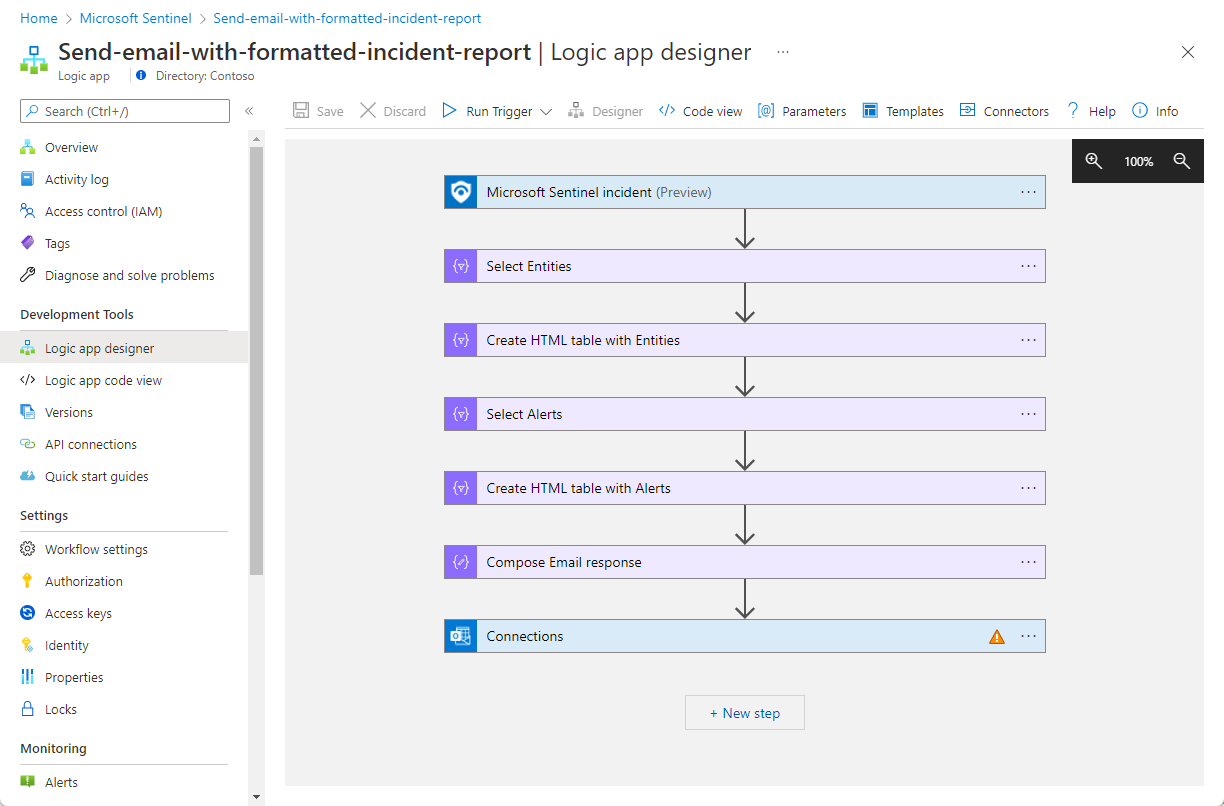 Technically, a playbook template is an Azure Resource Manager (ARM) template, which consists of several resources: an Azure Logic Apps workflow and API connections for each connection involved.