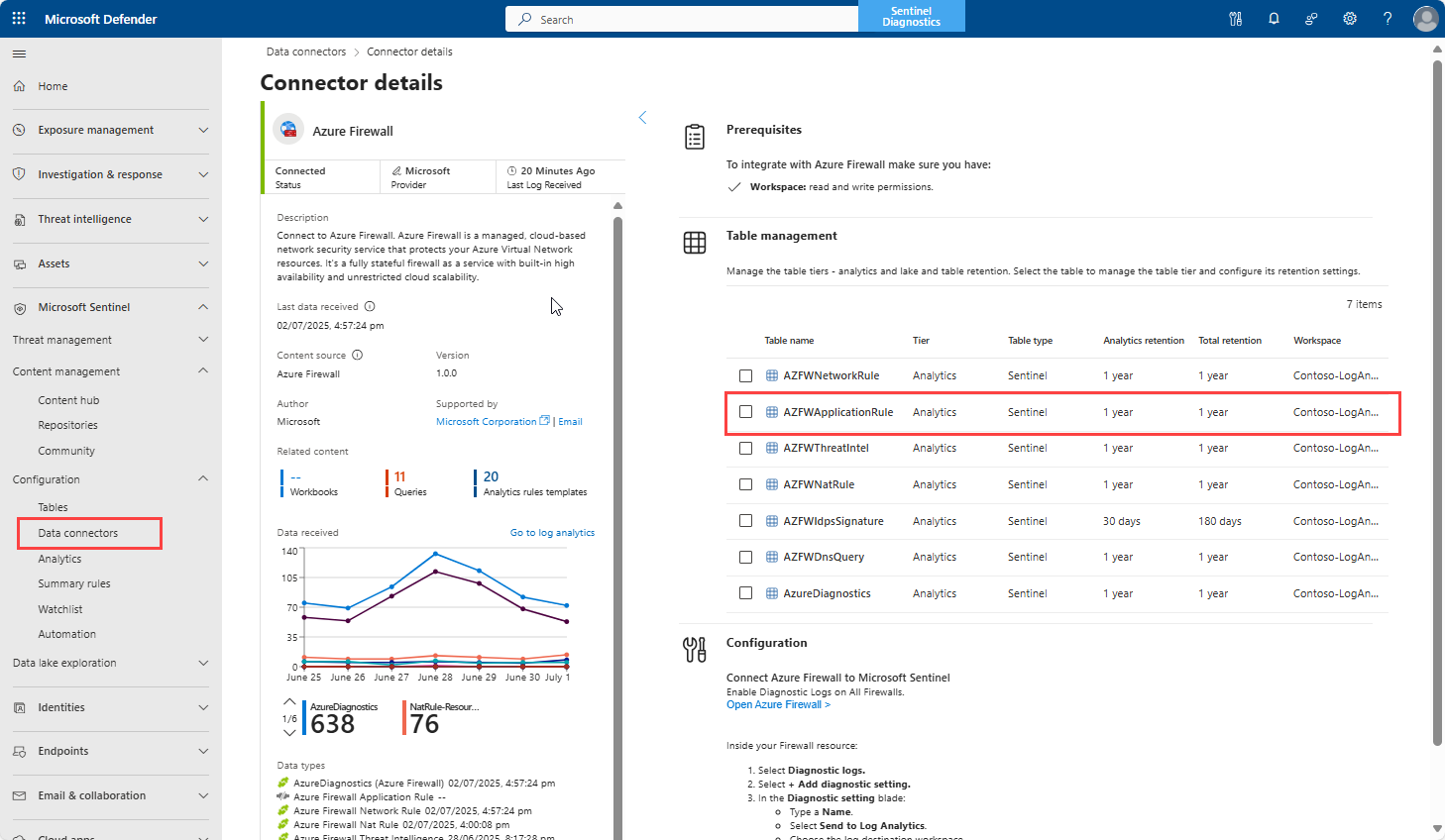 When you enable a connector, by default the data is sent to the analytics tier and mirrored in the data lake tier. Configure data retention in each tier or send the data only to the data lake tier. Retention and tiering are managed from the connector setup pages, or using the Table management page in the Defender portal. For more information on table management and retention, see Manage data tiers and retention in Microsoft Defender Portal.
