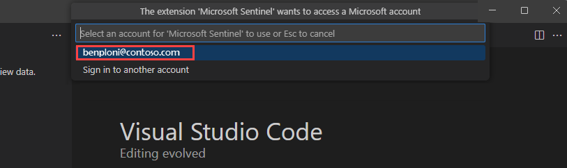 A dialog appears with the following text The extension "Microsoft Sentinel" wants to sign in using Microsoft. Select Allow.